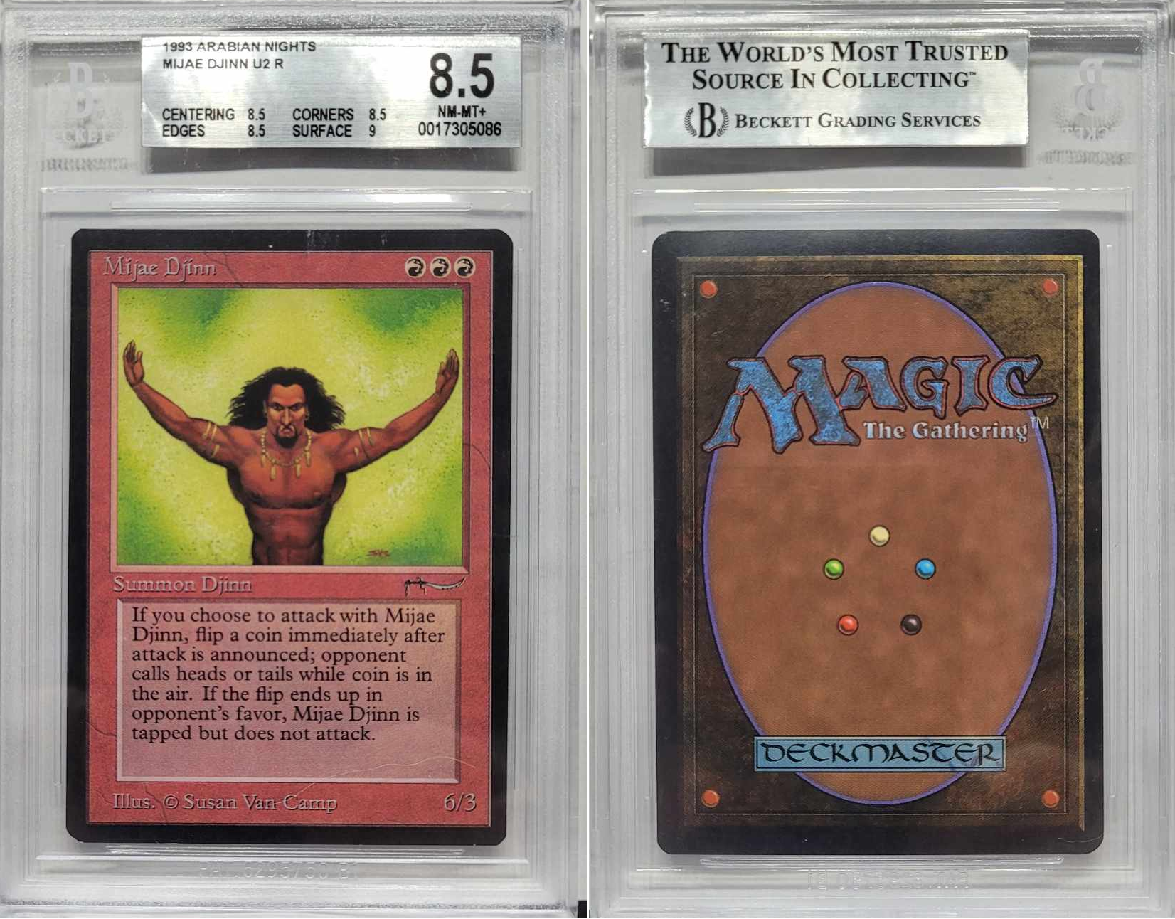 GRADED: 1993 Magic The Gathering Mijae Djinn Arabian Nights (ARN) BGS 8.5 NM Graded U2R